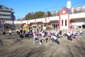 ニュータウン通りに面した多摩市唯一の平屋建ての園舎。安心安全な環境で過ごし、広い園庭で思いっきり遊び、豊かな心と生きる力を育みます。