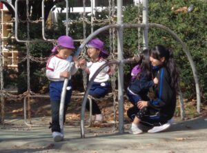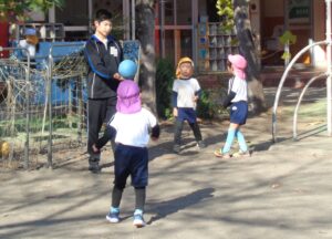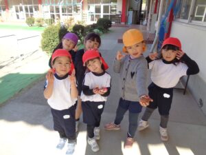 12月のお楽しみ会に向けて2日間リハーサルがあり、本日が1日目でした。子ども達は緊張もあったと思いますが、舞台で元気に演じました。幼稚園には、昨日から3日間市内公立中学校の生徒さん3名が職場体験に来ています。年少組から年長組のクラスに入り子ども達と生活をしています。外遊びの時には、子ども達と元気一杯園庭で鬼ごっこをしたり、サッカーをしたり、砂場遊びをしたりと遊んでくれ子ども達は大喜びです。生徒さんからもたくさんの笑顔が見られます。子ども達は、園庭で実をつけるザクロが大好きです。ザクロは実は赤く種がありますが甘酸っぱさがなんとも言えずに美味しいです。