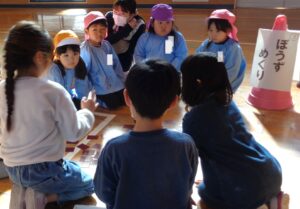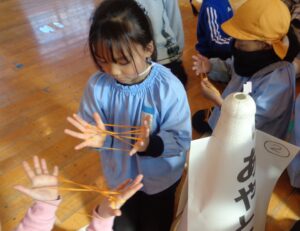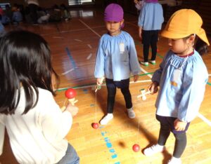 多摩第三小学校の1年の皆さんと昔遊びの交流がありました。1年生の皆さんが、おはじきや独楽、羽子板、けん玉などの遊びを教えてくれました。全部で七つの遊びのブースがあり、時間を区切ってブースを回り楽しみました。1年生が優しく教えてくれ楽しく交流ができました。交流の後は、校長先生に校舎内を案内していただきました。校舎内だけでなく授業中の教室にも入らせていただきました。小学生が真剣に学習している様子を間近で体験できました。先生方をはじめ多摩第三小学校の1年生の皆さんありがとうございました。