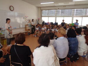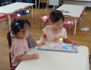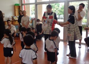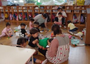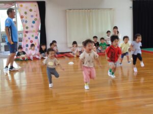 敬老参観がありました。たくさんのお爺さま、お婆さま、ご家族の方にお越しいただきました。自己紹介の後には、お孫さんやお子さんと一緒にゲームをして楽しんでいただきました。子ども達もとても楽しそうでした。もも組さんは参観はありませんでした。ホールでかけっこなどをして体を動かして楽しみました。教室にもどった後は本を読んだりおもちゃで遊んだりして楽しみました。敬老参観にお越しいただいた皆様ありがとうございました。