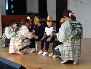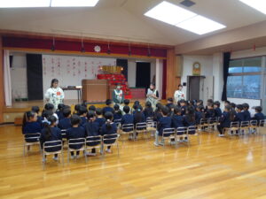雨のため外では遊びませんでしたが、水がめにとっては恵みの雨だったのでしょう。今日は、3月生まれのお誕生日会がありました。お友だちへのインタビューやお誕生日カードのプレゼントがありました。お誕生日のお祝いの後は、ひな人形の説明やおひな様クイズがありました。お誕生日会後は、年長組さんが卒園式の練習をしました。入場から証書授与など本番通りの流れで行いました。
