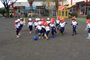 本日も気持ちの良い青空が広がり、子ども達は元気に遊ぶことができました。明日にかけ雨が降るとの予報があり残念です。本日は、年長組の9名のお友達の誕生会があり、誕生日のお友達クイズなど…