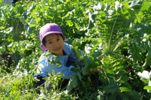 低い気温で一日がスタートしましたが、日中は一面の青空で気持ちの良い日になりました。今日は、年長組さんが大根の収穫をしました。たくさんある大根の中から自分の好きな大根を収穫しました。…