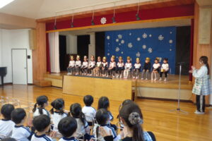 1月生まれのお友だちのお誕生日会がありました。お祝いの歌や言葉、お誕生日カードのプレゼントがありました。お誕生日会の後は、もも組のお友だちが「アンパンマン」の歌を発表しました。もも…