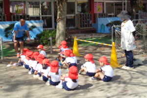 気持ちの良い天気の中、年少組さんが体操の活動をしました。鉄棒で前回りおりの練習をしました。「怖い」と言うお友達もいましたが、頑張って練習しました。鉄棒の後は、ジグザグで走ったり、ウ…