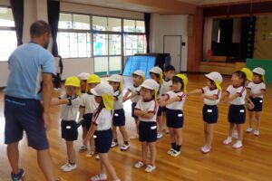 暑い一日でした。本日全園児で納涼会のリハーサルを行いました。園庭中央に和太鼓をおき、太鼓の周りに全園児が輪になり、2曲練習しました。暑い中でしたので、動きを確認することをメインに短…